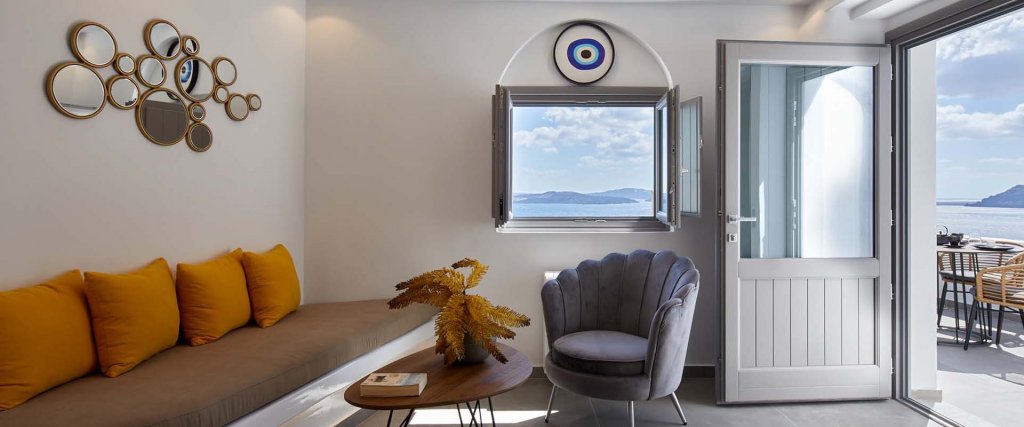 The Allure Breeze Suites are minimally decorated, harmoniously incorporating the traditional Cycladic style with modern amenities to make you feel like home. As you enter your suite, you will instantly observe the unique pieces in the décor that the owner has kept intact with deep respect for the island's heritage.